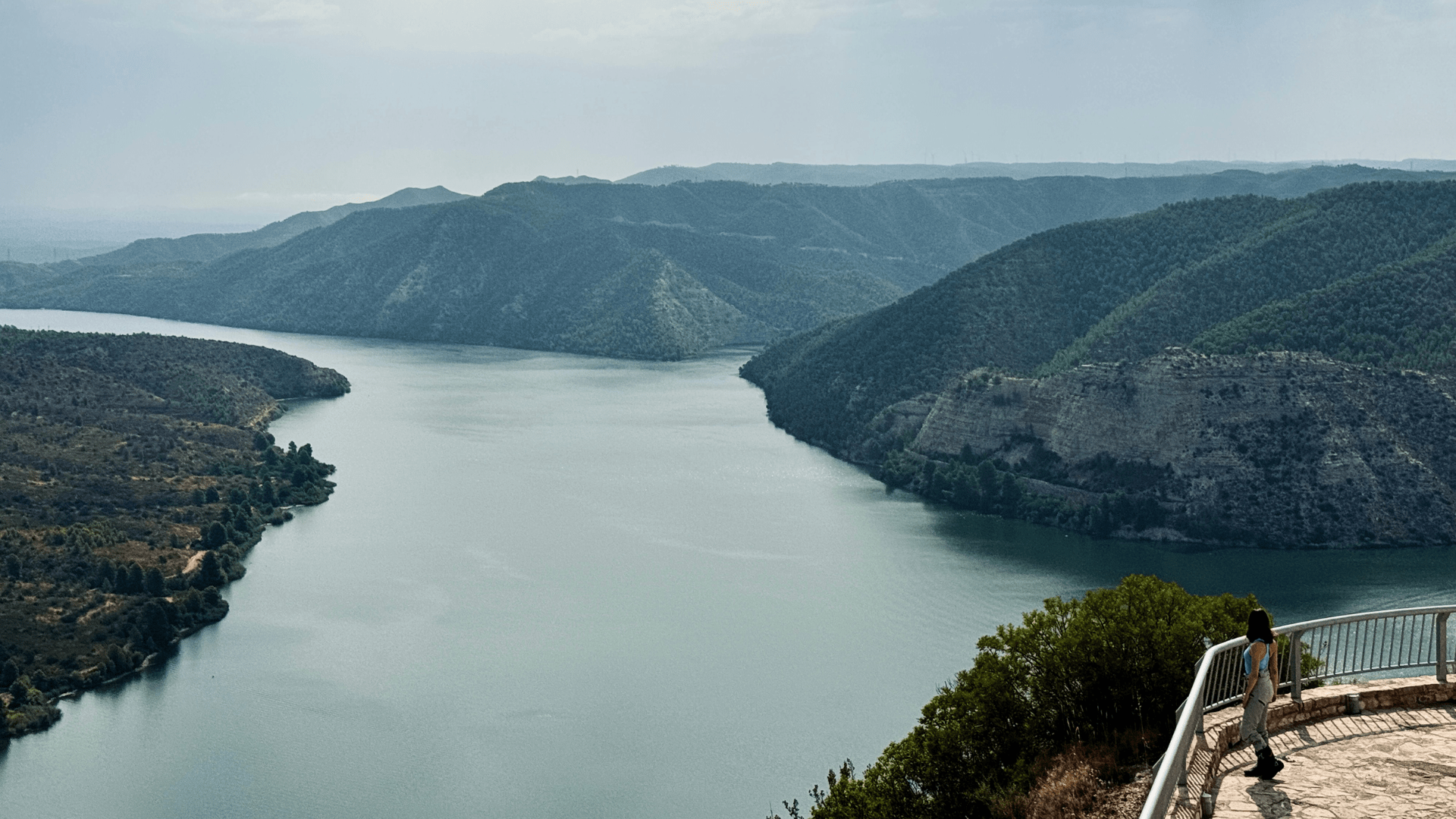 Continuamos pasando por Flix, Ascó (donde se ve a lo lejos su imponente central nuclear) y el embalse de Riba-Roja. La carretera nos siguió regalando unas cuantas curvas divertidas antes de cruzar la frontera de Cataluña a Aragón y llegar a nuestra próxima parada, en Fayón, población clave en la conocida batalla del Ebro de la guerra civil. Allí nos detuvimos a desayunar en el espectacular Mirador del Ebro.