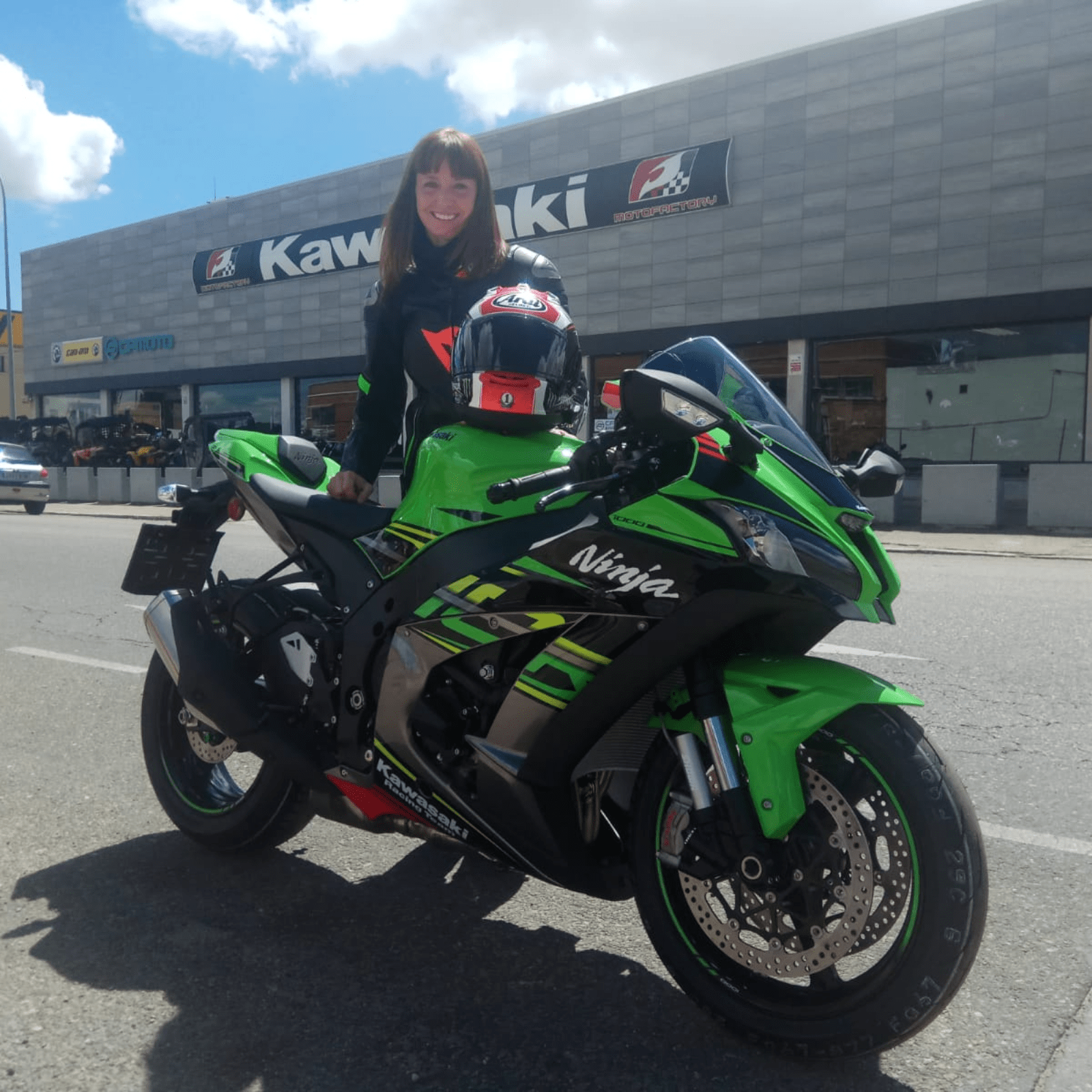 En cuánto pasaron los 2 años, me saqué el carnet A, y accedí a mi primera moto de gran cilindrada, una Kawasaki Ninja Zx10R, moto que me enamoró, con la cuál me sentí muy identificada, realizando numerosos viajes, circuitos y rutas, destacando un viaje de más de 6000 km por toda Europa, hasta Italia.